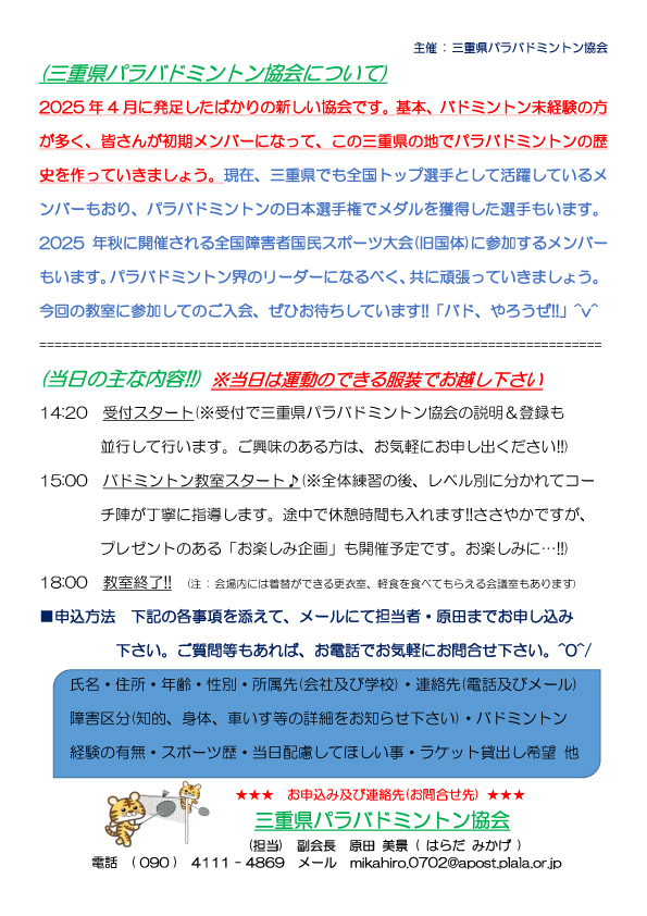 【三重県パラバドミントン協会主催】第一回バドミントン教室