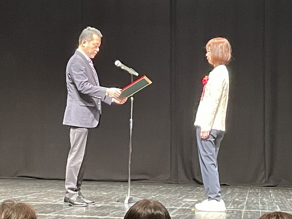 フォーラムでは、三重県地域スポーツ推進表彰式が行われ、三重県障がい者スポーツ協会から推薦の三重県障がい者卓球協会が地域スポーツ優良団体を、三重県パラスポーツ指導者協議会から推薦の花本理事が地域スポーツ推進功労者を受賞されました。