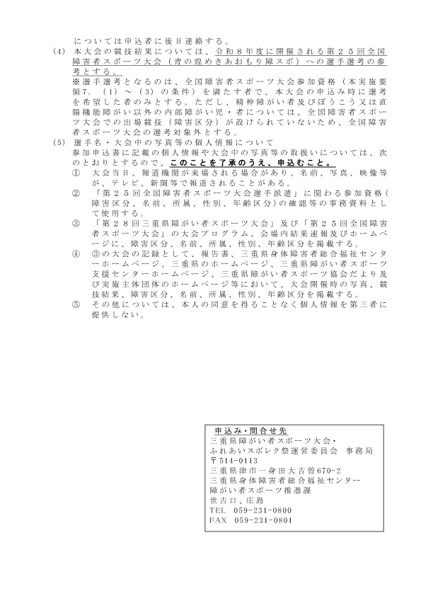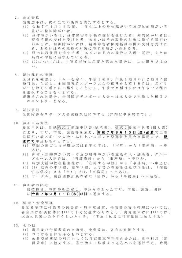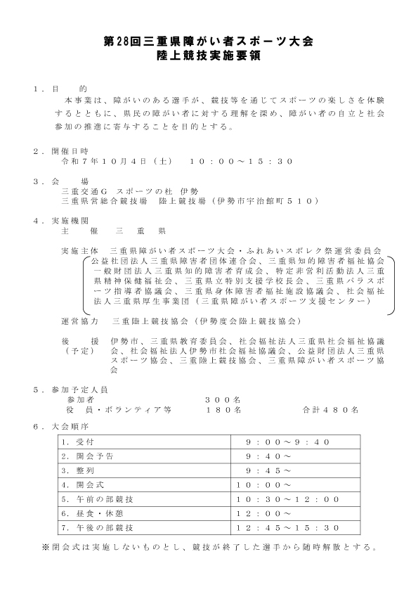 第28回三重県障がい者スポーツ大会陸上競技 ボランティア募集