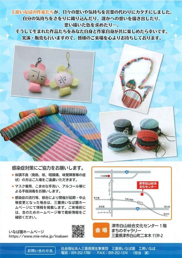 今年も工房いなばの作家たちが作り出した作品の展示・販売会を行います。