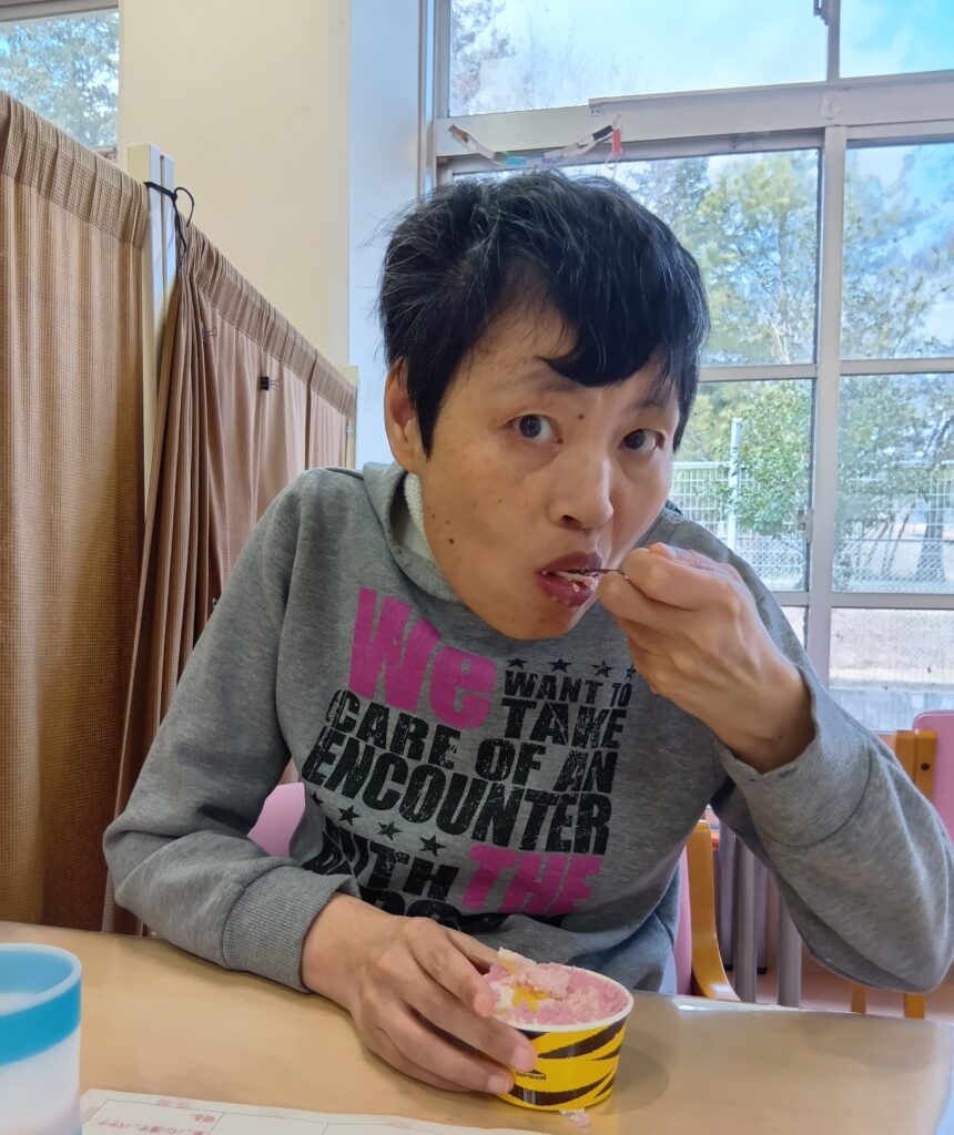 午後からは、鬼の形のケーキを食べ、おいしそうに召し上がられていました!